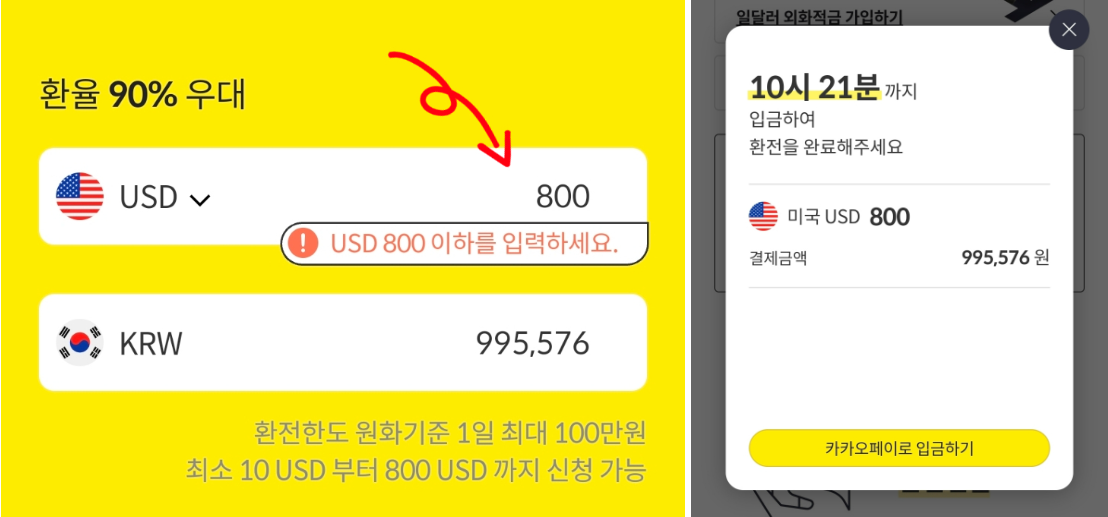 환전한도는 하루 최대 100만원이라고, 그 이상 하실분들은 하루하루 나눠서 해주시는게 좋겠죠?